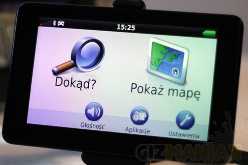 Z początku długo nie mogłem przyzwyczaić się do ekranu startowego Garmin. Mamy tylko dwie duże ikony: „Dokąd?” oraz „Pokaż mapę”. Definiując miejsce docelowo musimy literować cały adres. Tutaj system mógłby być bardziej przyjazny i podpowiadać nam większe miasta i ważniejsze adresy. Poza adresem możemy kierować się na jeden z wielu zdefiniowanych punktów takich jak parkingi, hotele, miejsca rozrywki czy stacje benzynowe lub najbliższy kantor.