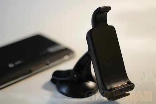 Tradycyjna konstrukcja przyklejana do szyby. Mała, zgrabna i ładna. Trzyma się doskonale i nie miałem żadnych obaw, że odpadnie w czasie jazdy. Garmin zastosował bardzo prosty i efektywny mechanizm montowania nawigacji na przegubie z kulką, dając możliwość dowolnego ustawiania ekrany pod takim kątem jaki nam pasuje. W głośnik wyposażona jest zarówno nawigacja jak i stacja dokująca, która daje całkiem przyzwoity dźwięk. Umieszczanie urządzenia w stacji dokującej jest proste i kończy się przyjemnym klikiem. Zwolnienie jest tak pomyślane, żeby można było wygodnie zdejmować nawigację jedną ręką. W komplecie mamy samochodowy kabel zasilający z wbudowanym cyfrowym odbiornikiem komunikatów drogowych 3D Traffic oraz kabel USB do połączenia z komputerem. Dla poprawy sygnału komunikatów 3D Traffic można wykorzystać dołączoną antenę.